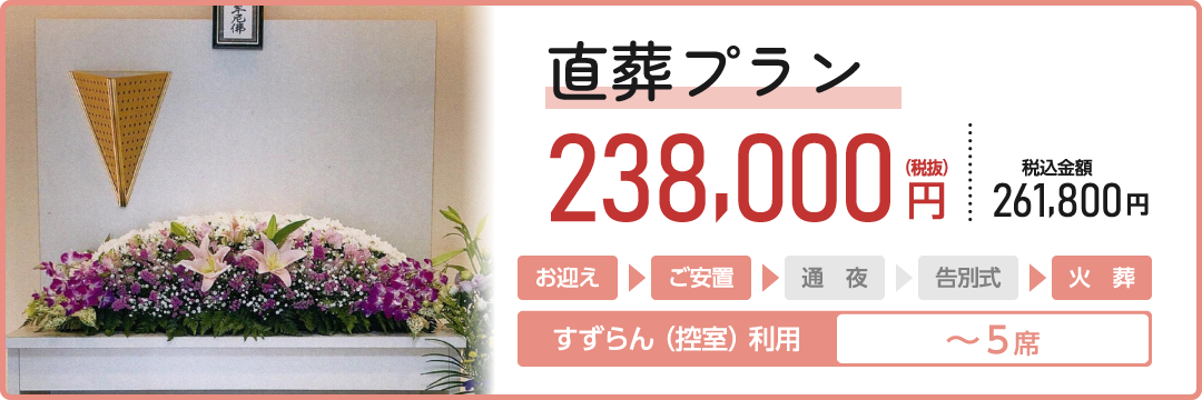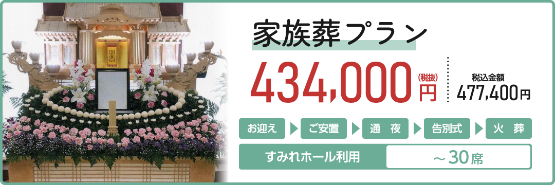 かさいフローレでは、ホール内に備えた2つの式場と控室を利用して、直葬から家族葬、一般葬など幅広いプランをご用意しております。また、宗旨・宗派を問わず社葬や大型葬などにも対応し、広々とした空間でゆったりと安心してお見送りいただくことができます。その他、ご希望に応じて様々なオリジナル祭壇デザインをお選びいただくこともできますので、お気軽にご相談ください。